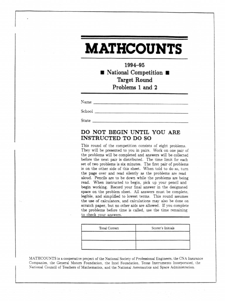 MATHCOUNTS School Handbook MATHCOUNTS Mathcounts Pdf last year's chapter and state competitions are available for free! All answers must be complete, legible and simplified to lowest terms. the mathcounts school handbook contains lots of creative problems meeting national council of teachers of. National society of professional engineers 3mgives texas instruments incorporated. calculations may be done on scratch paper. We'll replace these files as. Mathcounts Pdf.